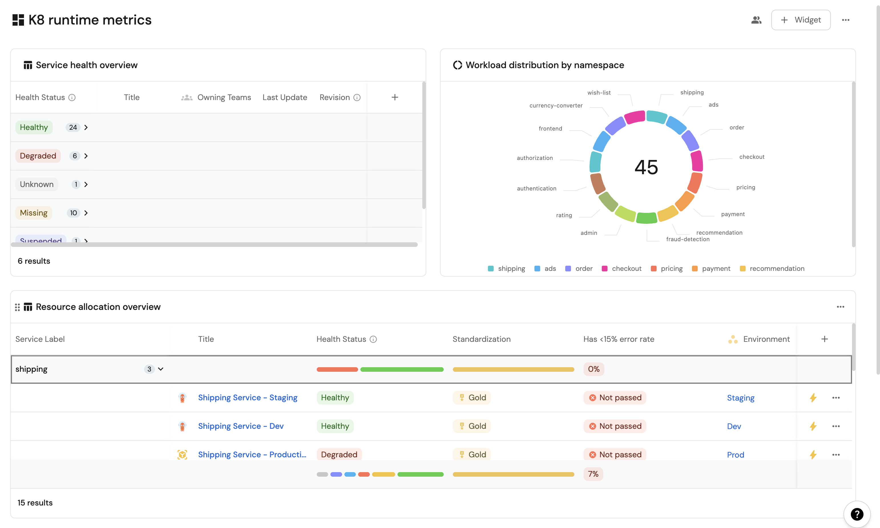 These widgets will give you a comprehensive view of your Kubernetes runtime, making it easy to monitor service health, resource usage, and deployment status across your cluster.